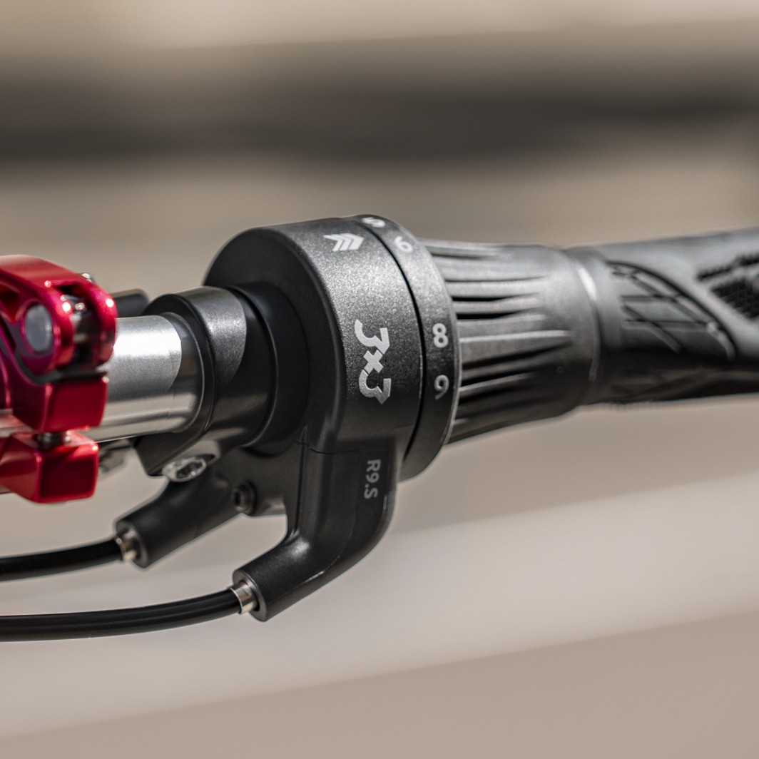 Drehgriffschalter sind jedoch relativ kurz und werden in der Verlängerung des eigentlichen Griffes montiert. Sie werden also praktisch nur von Daumen und Zeigefinger geklemmt um sie dann zu drehen. Der Handgriff mit Drehgriffschalter ist drehbar am Kurbelarm gelagert, so kann es passieren, dass sich die gesamte Einheit beim Schaltvorgang wegdreht.