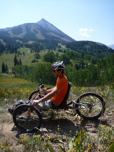 • Der Schwerpunkt am Mountain Handbike muss möglichst tief sein. Die Frosch-Position eignet sich hervorragend damit komplett Gelähmte den Mountain-Handbike Sport frönen können.